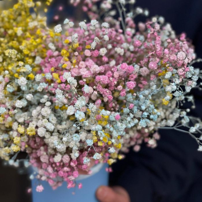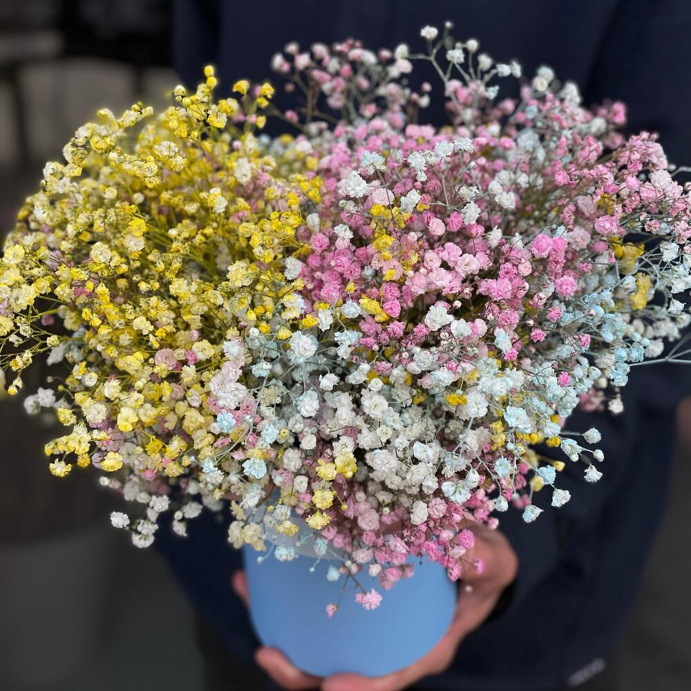 гипсофила микс – 7 шт.шляпная коробочка с лентами – 1 шт.