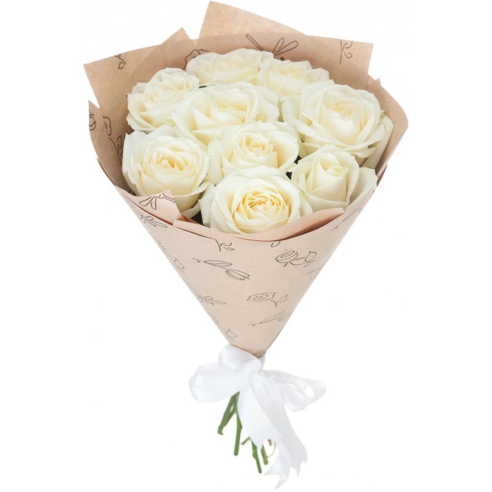 Букет из 11 белых роз в крафте